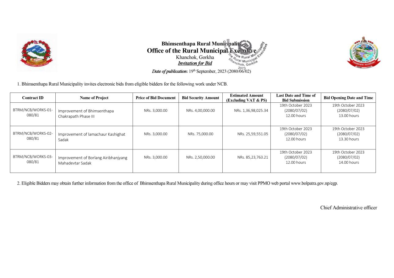 भिमसेनथापा गाउँपालिका क्षेत्रभित्रका व्यवसायीहरुको लागि सार्बजनिक सुचना ।।