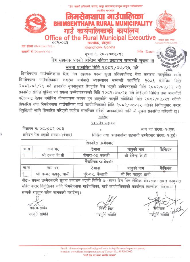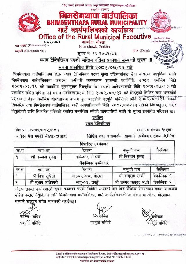 बैकल्पिक उम्मेदवारहरुको नियुक्ति एवं सम्झौताको लागि सम्पर्क राख्न आउने बारेको सूचना
