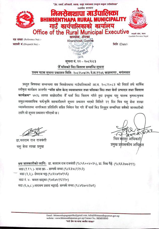 जै घाँसको बिउ वितरण सम्बन्धी सूचाना ।