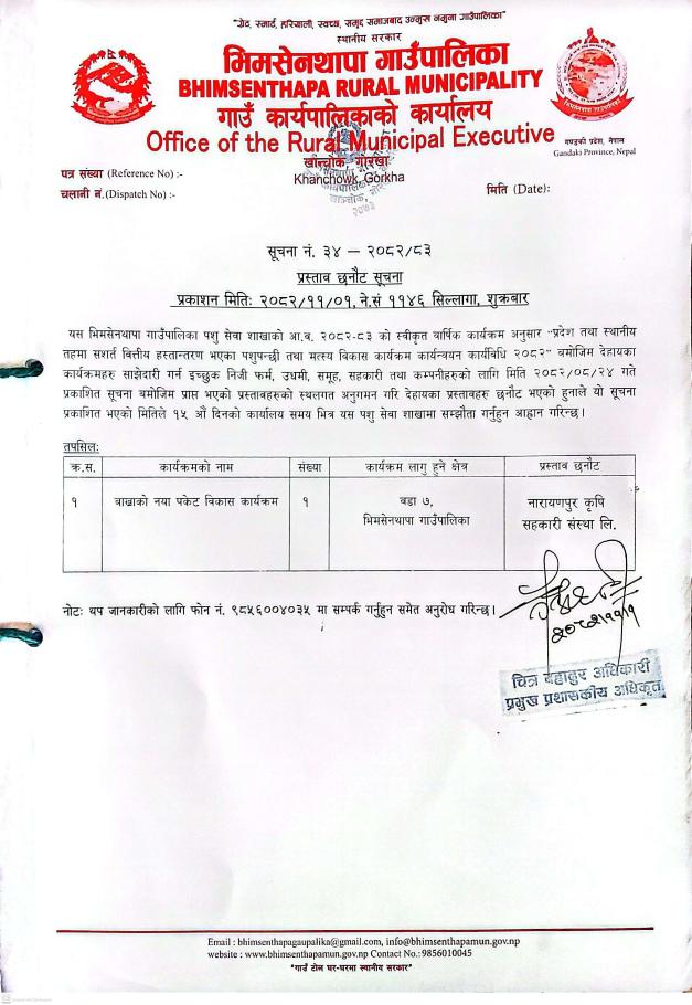 प्रस्ताव छनौट सम्बन्धी सूचना ।