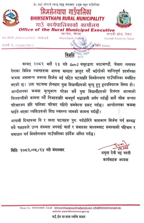 भिमसेनथापा गा.पा.को सार्बजानिक अनुरोध