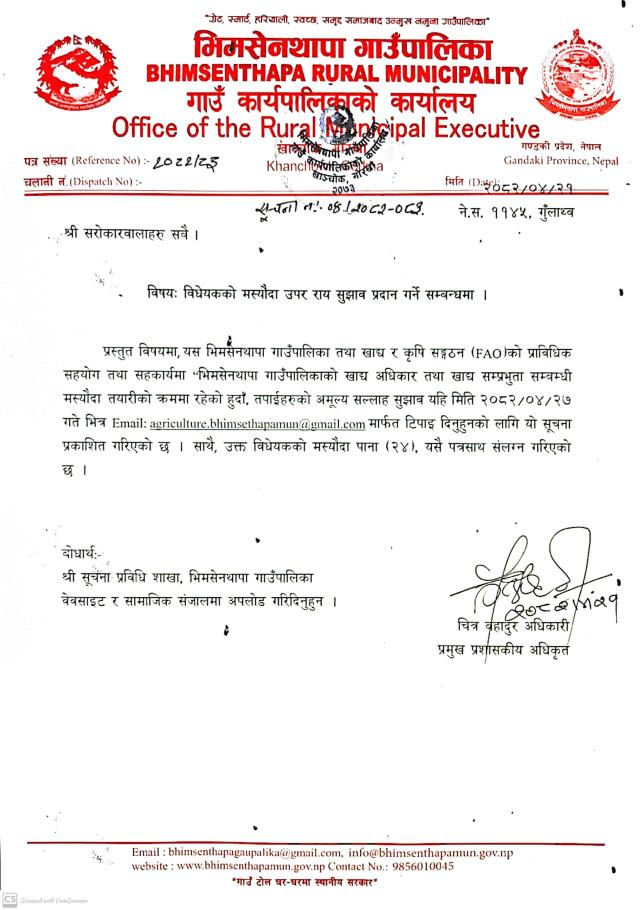 भिमसेनथापा गा.पा.को सार्बजानिक अनुरोध