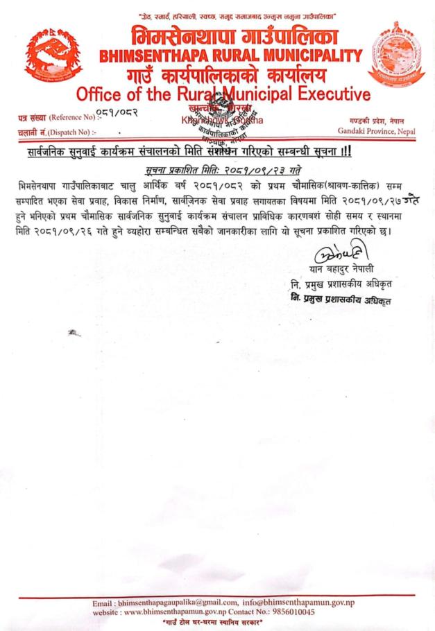 भिमसेनथापा गा.पा.को सार्बजानिक अनुरोध
