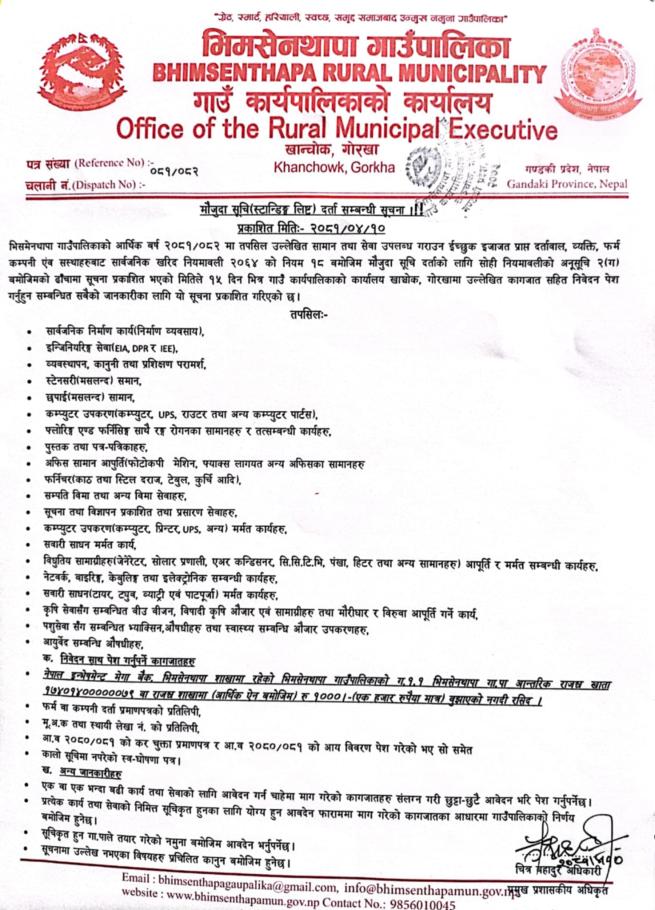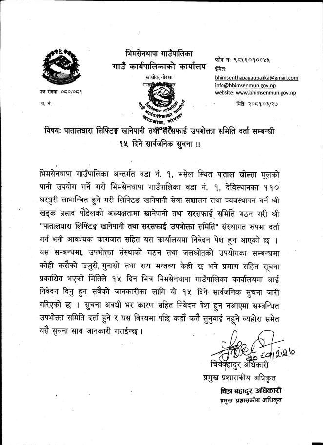 भिमसेनथापा गा.पा.को सार्बजानिक अनुरोध