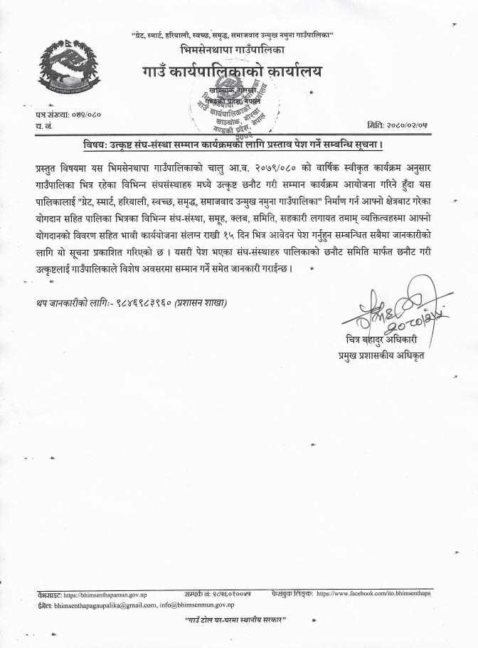 भिमसेनथापा गा.पा.को सार्बजानिक अनुरोध