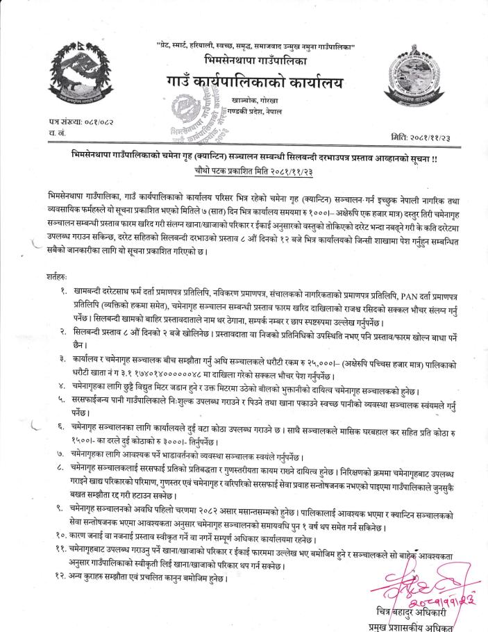 भिमसेनथापा गाउँपालिका क्षेत्रभित्रका व्यवसायीहरुको लागि सार्बजनिक सुचना ।।