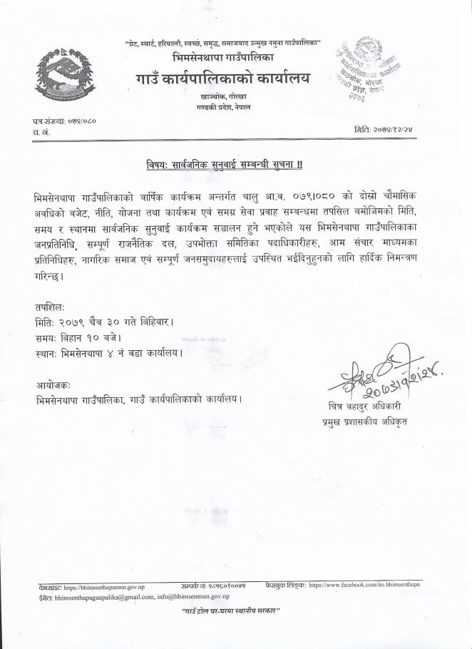 भिमसेनथापा गा.पा.को सार्बजानिक अनुरोध